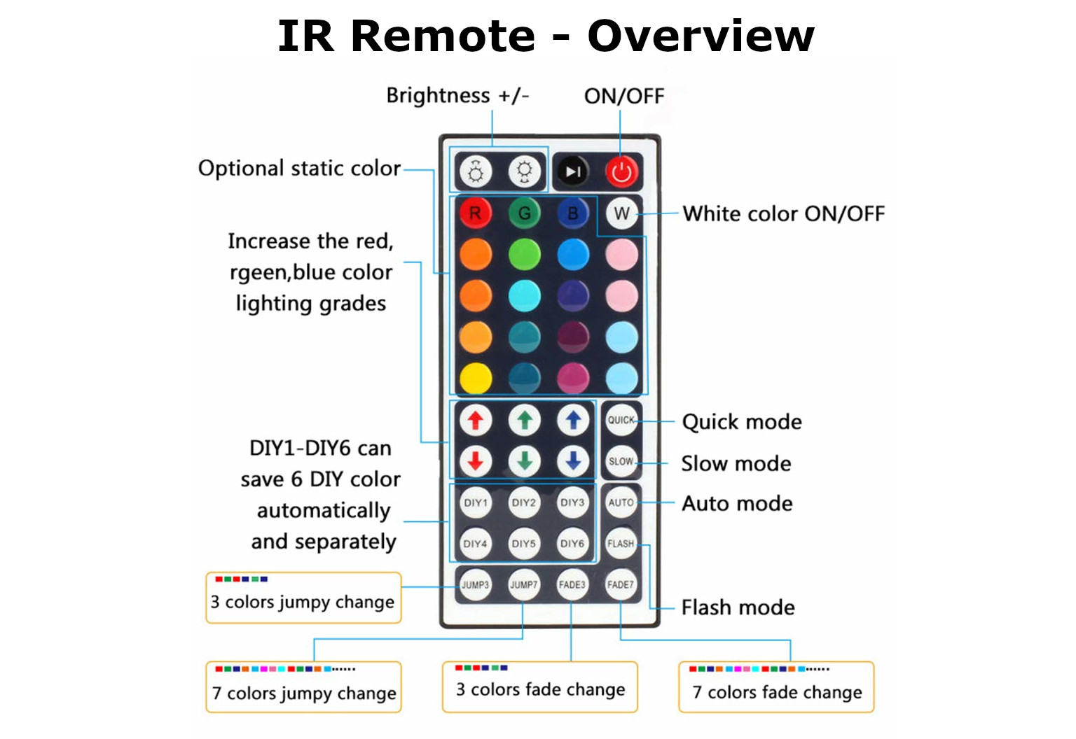 Package Includes: 1 x 12V DC RGB  LED Light Strip Driver IR Remote Controller 44 Keys
