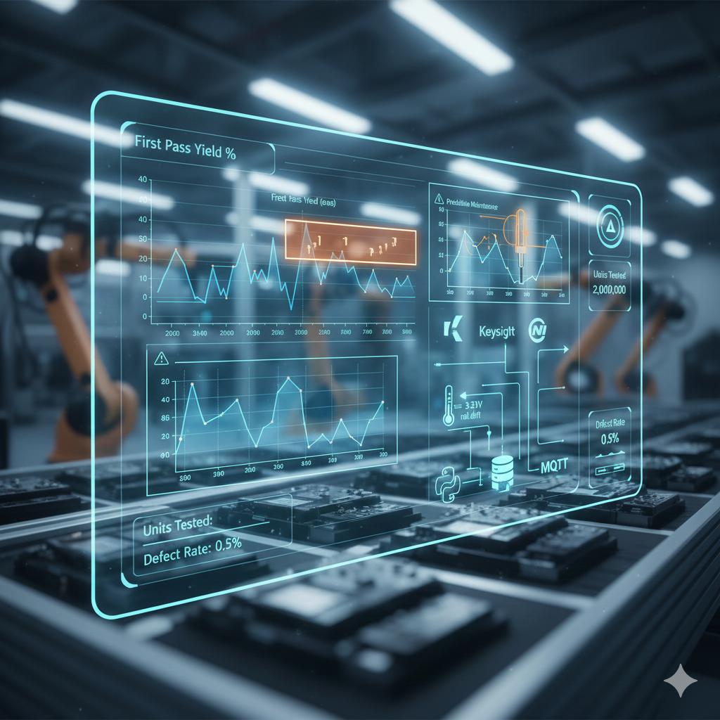 Result: The test cycle time dropped to 45 seconds (96% reduction). The automated system caught 100% of the safety defects, reducing their field failure rate to near-zero. Every single board now has a "Birth Certificate"—a digital log of its exact calibration values—stored in the client's cloud database.