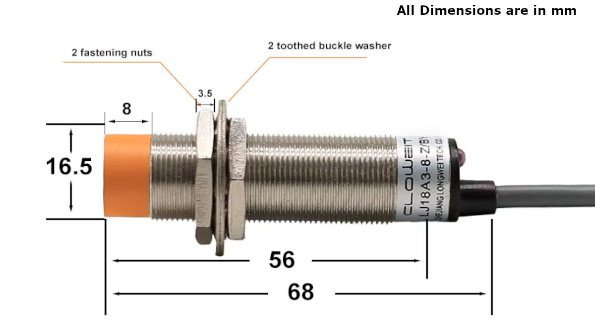 Package Includes: 1 x LJ18A3-8 M18 Threaded 6-36VDC 8mm Inductive Proximity Switch Sensor NPN-NO Unshielded Non-Flush Type