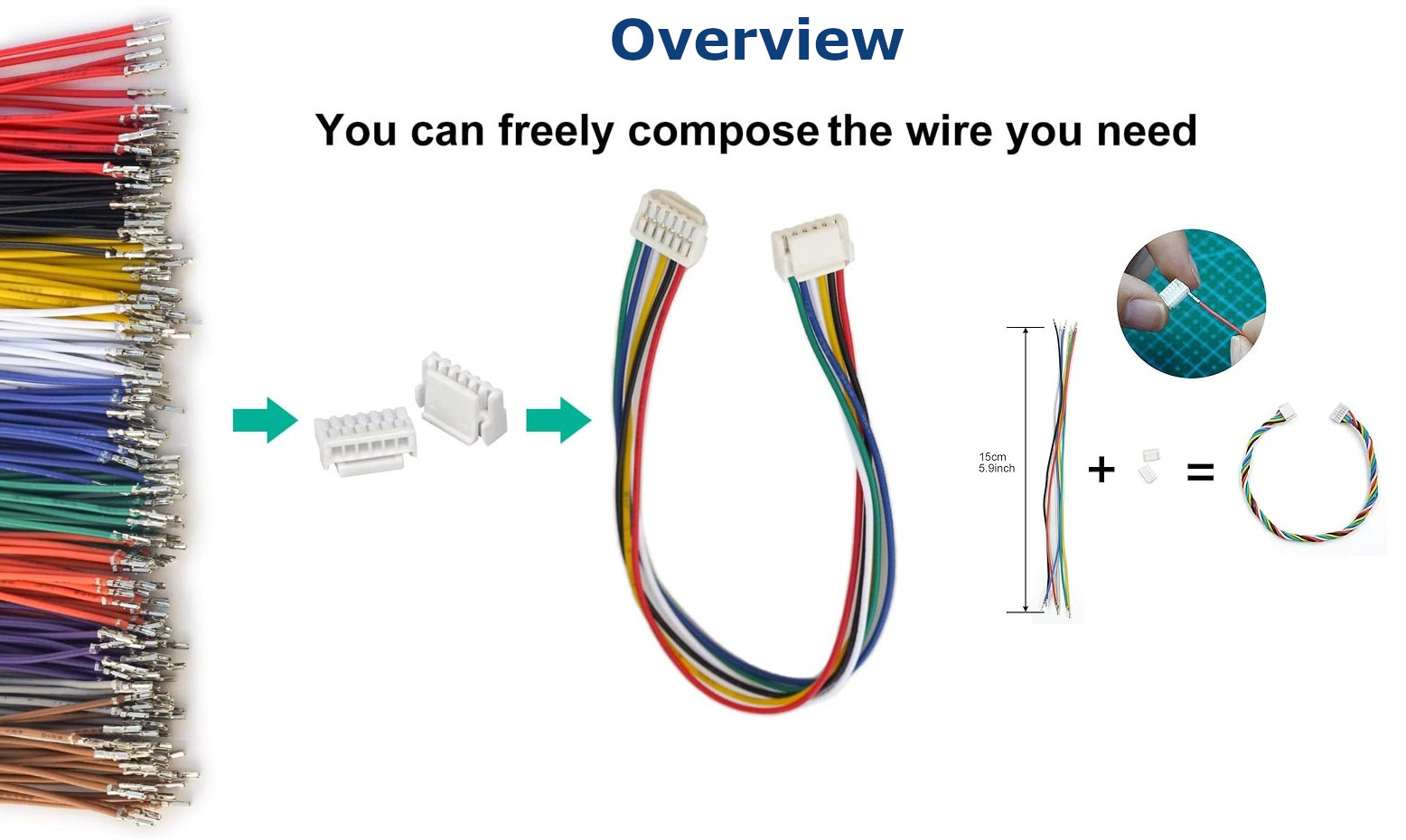 • 180PCS X 15cm Pre-crimped GH1.25 to GH1.25 Cables ( 6 colours, each colour 30 cables)