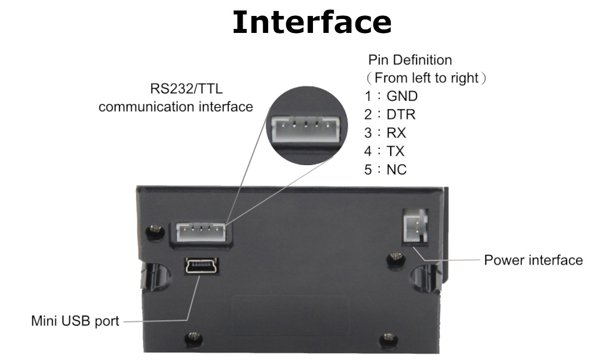 • Resolution: 203DPI (8 dots/mm, 0.125mm/dot, 384 dots per line)