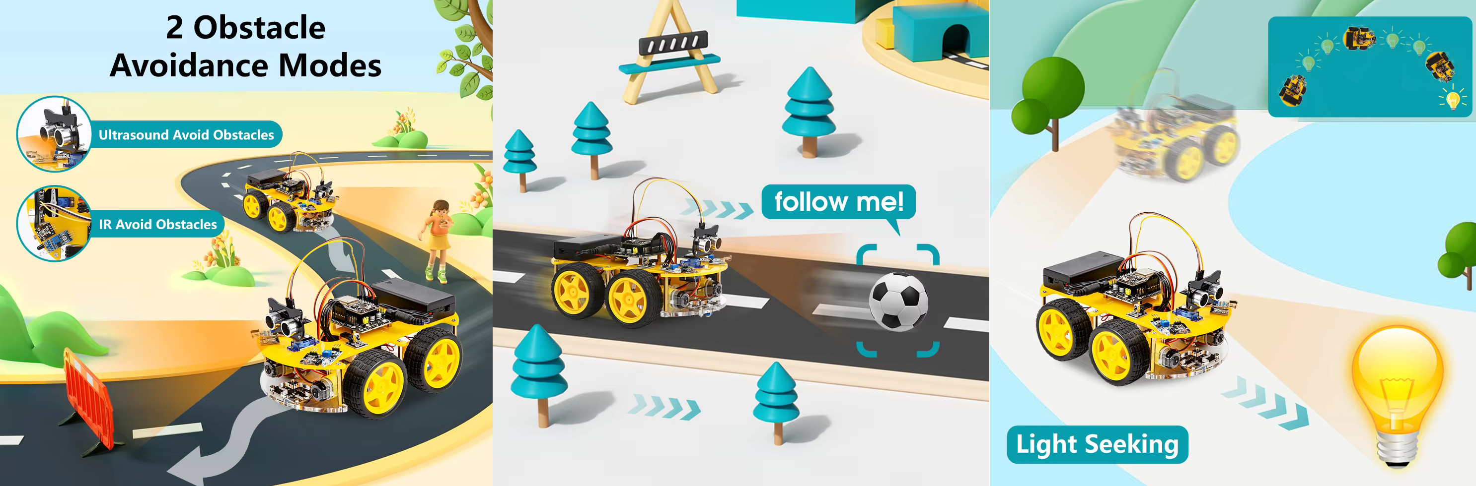 This 4 WD Smart Robot Car Kit provides a gateway to STEM education and robotics. With the ability to expand its features, even college students and hobbyists of all ages can benefit from thinking and inventing endless possibilities. From remote control, programming unique tasks, and completing design challenges, it makes learning robotics, electronics, and programming fun and provides a practice-based steam education.