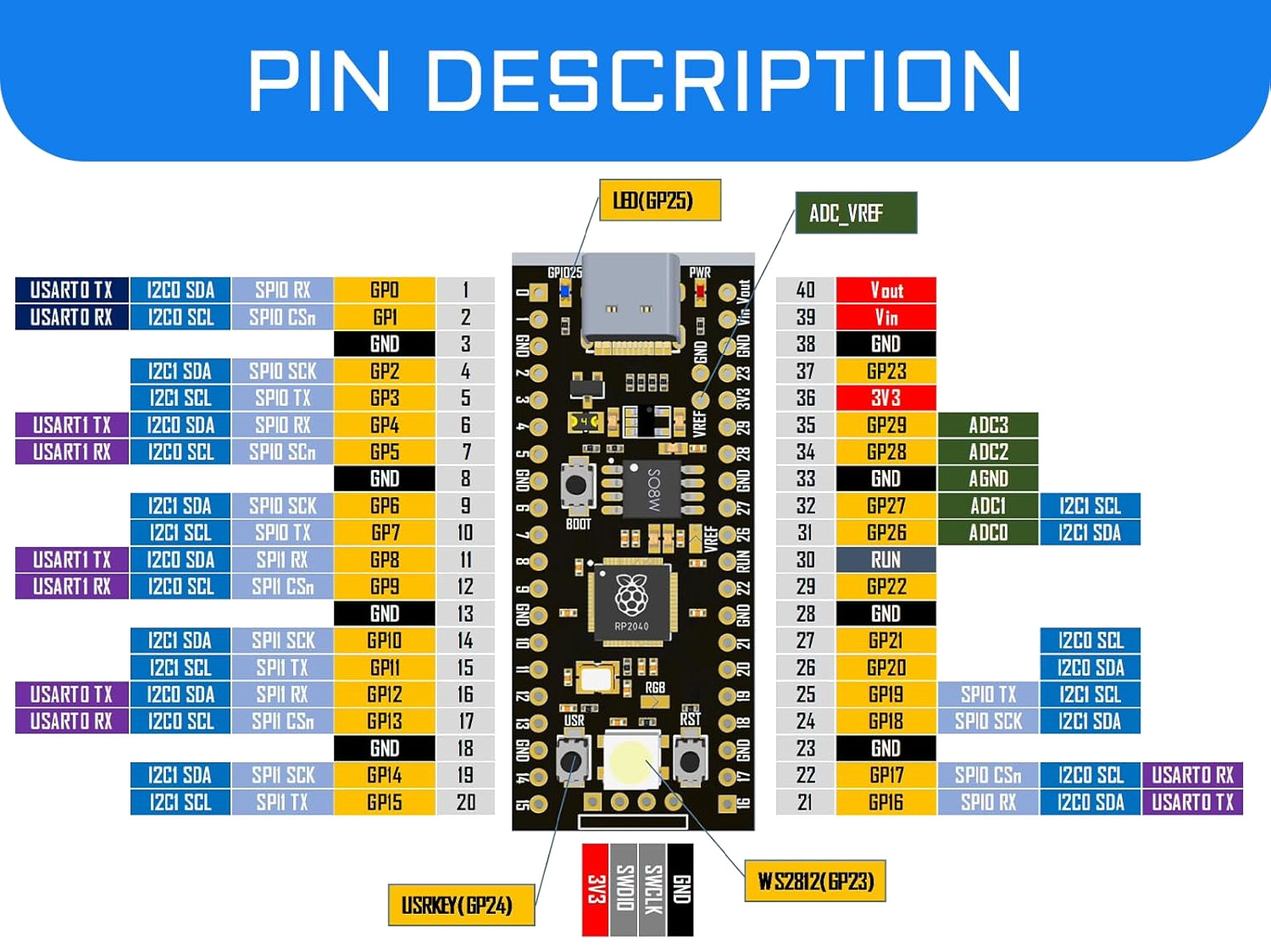 An enhanced Raspberry Pi Pico alternative featuring 4MB QSPI Flash, modern USB Type-C connectivity, and onboard RGB LED. Perfect for MicroPython and C++ development.